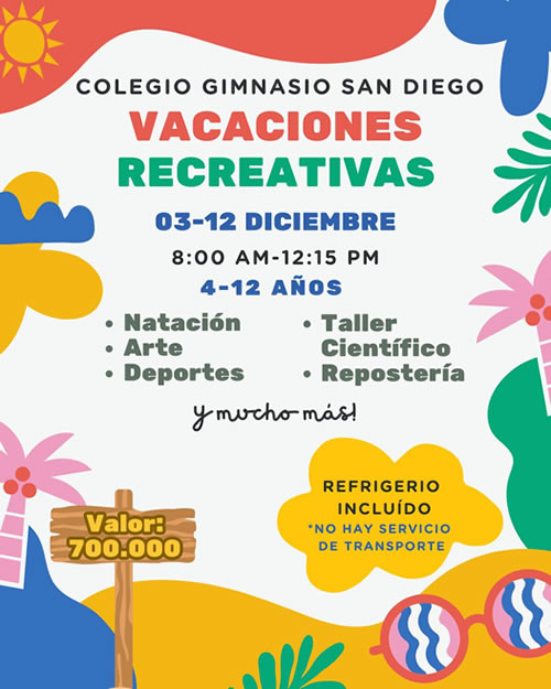 San Diego Kids Preschool , esta ubicado en el Gimnasio San Diego, en Ruitoque Bajo, en el Km2, con una ubicación cercana pero privilegiada por el medio ambiente de conservación que la rodea, ideal para un desarrollo saludable y natural de nuestros pequeños, donde mediante el juego y el ambiente familiar complementamos lo que queremos sea para ellos, su segundo hogar. El nivel escolar de nuestro preescolar, se estructura en cinco diferentes grados, organizados generalmente de la siguiente manera: Caminadores Niños de 18 meses a 2 años, Iniciación Niños de 2 a 3 años, Prejardín Niños de 3 a 4 años, Jardín Niños de 4 a 5 años y Transición Niños de 5 a 6 años.